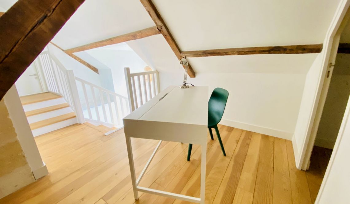 Situé au deuxième et dernier étage de l’immeuble, la luminosité est omniprésente. Celui-ci est composé d’un vaste espace séjour-salle à manger, d’une cuisine ouverte entièrement aménagée et équipée, de 3 à 4 espaces chambres, d’un coin bureau indépendant, idéal pour le télétravail. Une salle de bains, une salle d’eau et un WC séparé viennent compléter l’ensemble.