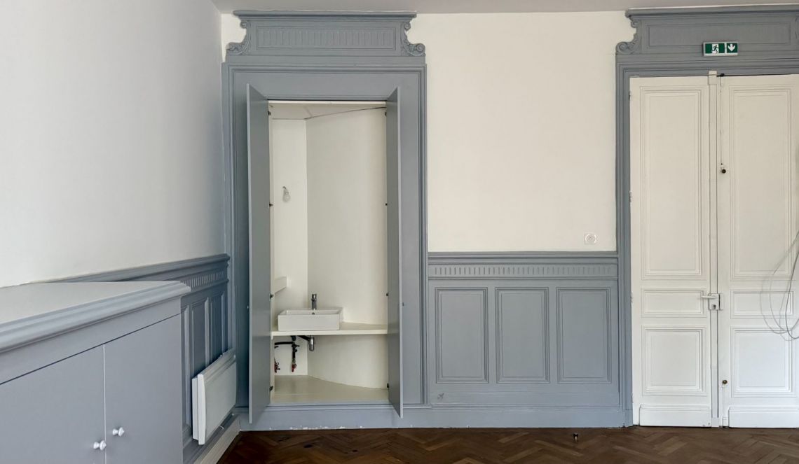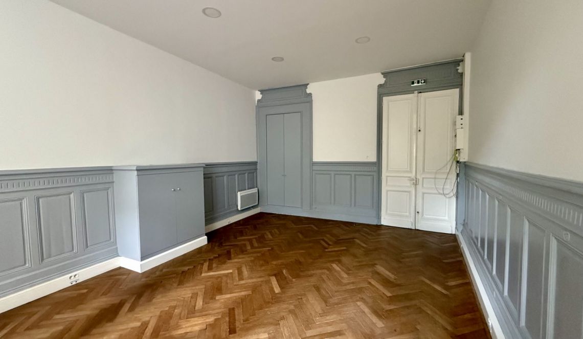 Situé au rez-de-chaussée d'un bel immeuble en pierre récemment rénové, il a pu garder ses prestations anciennes (parquet, hauteurs sous plafonds ...)