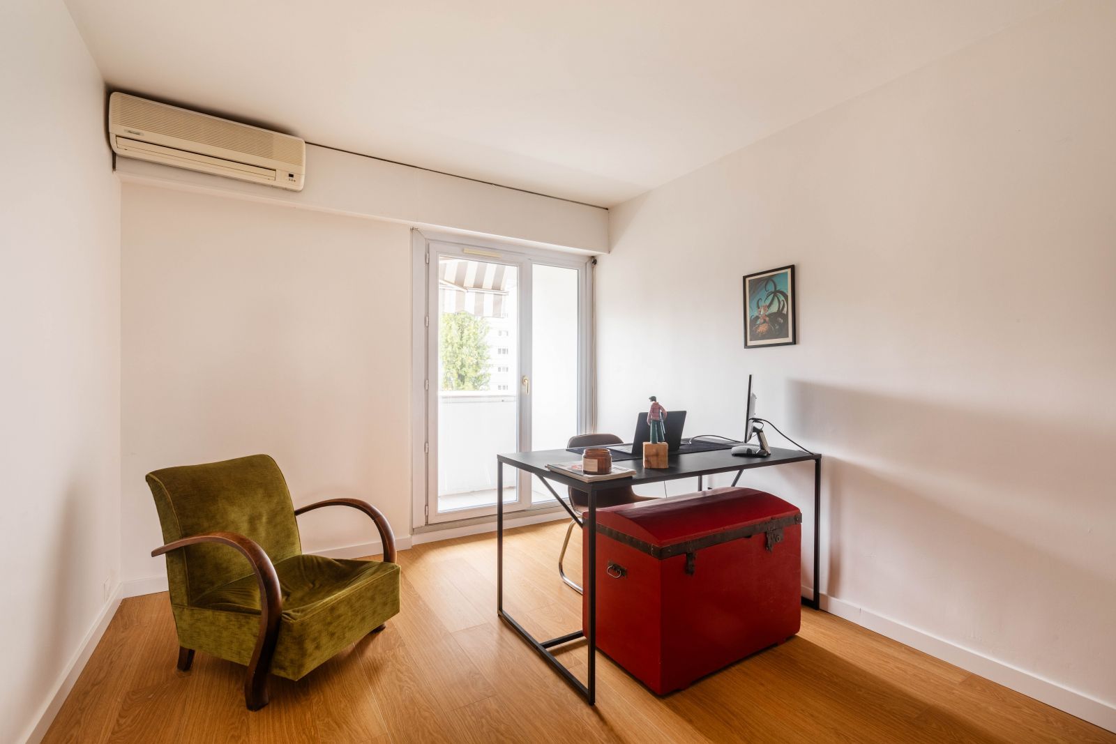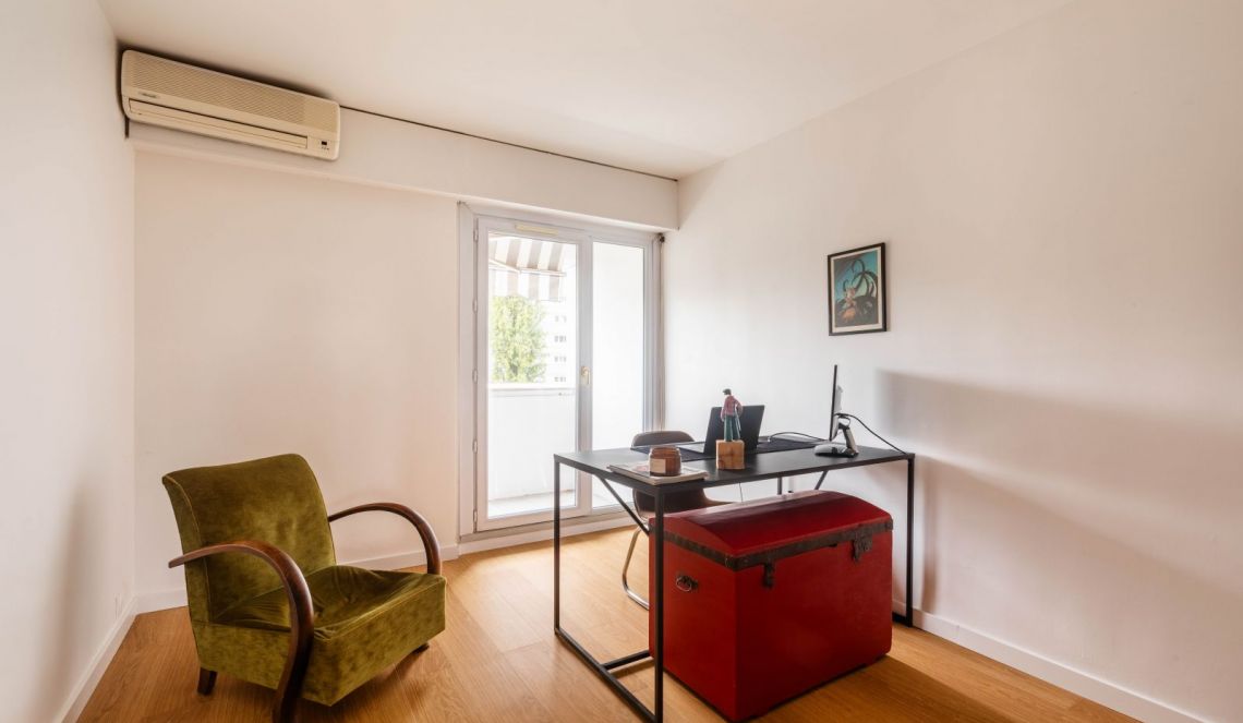 Actuellement agencé avec 2 belles chambres, son agencement optimisé pourrait permettre très facilement la création d’une 3ème chambre avec son point d’eau complémentaire. L’appartement est climatisé.